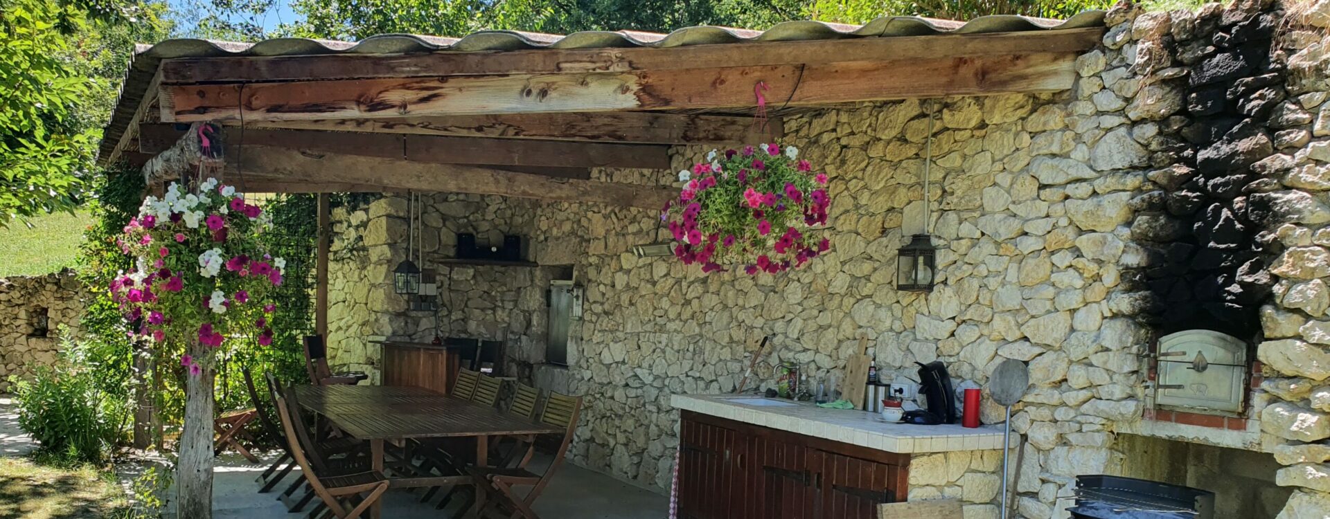 In de privé tuin van de gite bevindt zich ook een poolbar waar u heerlijk kunt vertoeven voor als het te warm is in de zon. De poolbar is van alle gemakken voorzien. Er is een extra vaatwasser, serviesgoed, stereo met Bluetooth, barbecue en een koelkast etc.